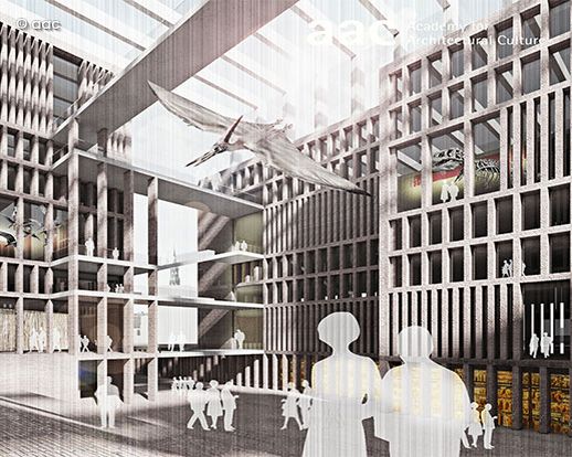 On the initiative of the University of Hamburg, the aac Academy for Architectural Culture is looking at designs for an "Evolutioneum" as a natural history museum of the 21st century in its 2015 fall workshop. The aim is to create designs that deal decidedly with the character of two possible locations. The major challenge here is to bring together the areas of exhibition, research and collection, to support interaction, to create transparency and to provide the public with access, insight and sensory experience.